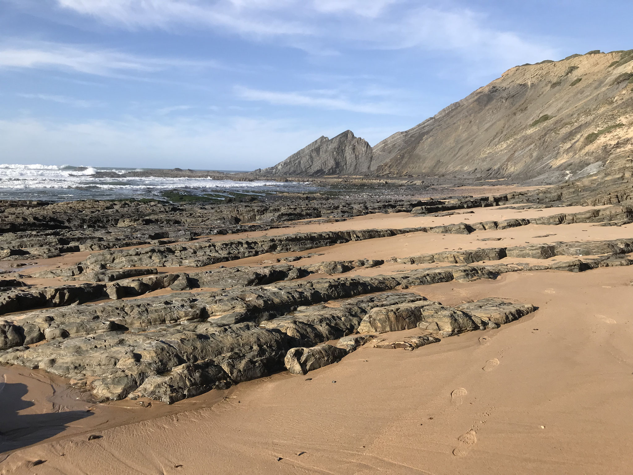 Nachdem wir unser Zimmer im Hotel in Aljezur bezogen hatten, machten wir uns auf den Weg zum "Praia da Amoreira". Ein traumhaft schöner "Ausflug" dem mäandrierenden Ribeira de Aljezur nach zu den gewaltigen Flyschformationen am Strand.
